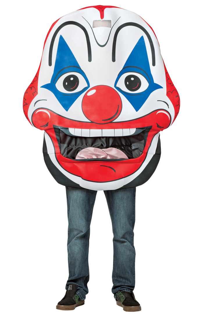 Featured on the Giant Clown Costume is a colourful print of a clown face, a big red nose and classic make-up. Not only is it a huge costume and will be seen by everyone at the party, but the mouth moves too. Open and close the clown jaw as you pretend to talk – it’ll certainly bring the laughs with friends. Get practicing your best clown impression!