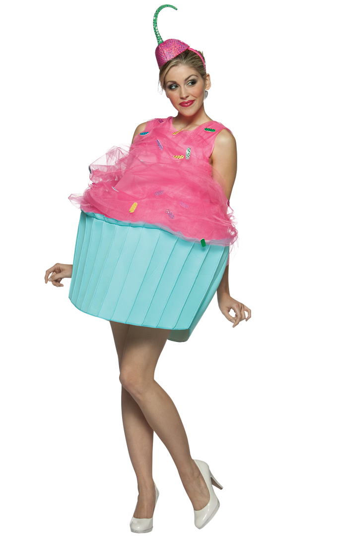 Cupcake has a hoop fitted so that the base forms a circle. The top pink frosting part of the cake has some pink netting attached with added sprinkles to make it look yummy, finally the hat is the cherry on top of the cake. This is a one size item designed to fit up to a size 14.
