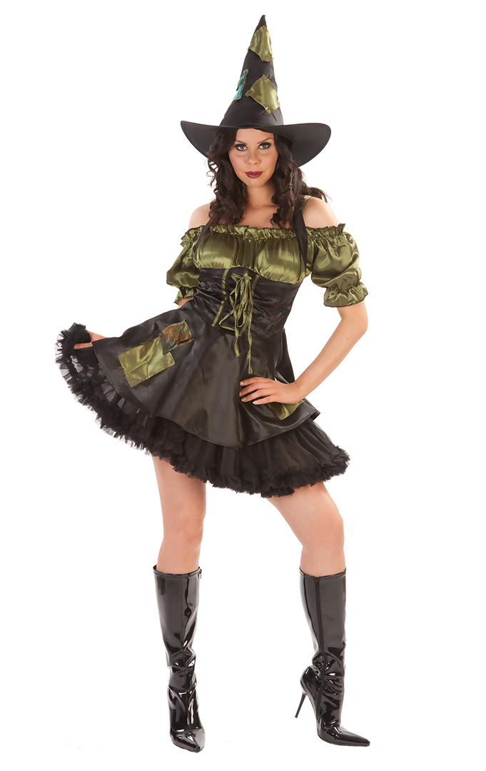 Going to a Halloween party and want to make a bewitching entrance? Fancy flying in on your broomstick in gooey green and midnight black? Look fashionably creepy with the Adult Green Patch Witch Costume and cackle all the way home!