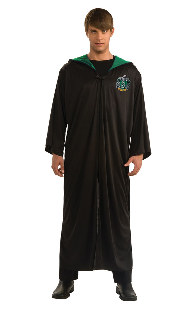 The Adult Harry Potter Slytherin Costume features the popular green and black hooded robe, with a replica Slytherin logo embroidered on the left side of the chest. Everyone will know you are part of Hogwarts’ most notorious house!