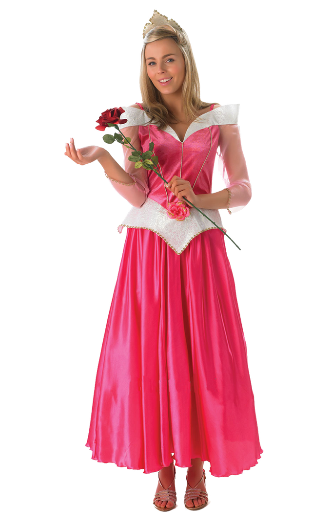 This Adult Sleeping Beauty Costume comes complete with a stunning pink floor-length dress. The dress features an off the shoulder look and corset-style top with white rim detailing. To complete the ultimate Sleeping Beauty look, it also includes a beautiful tiara.