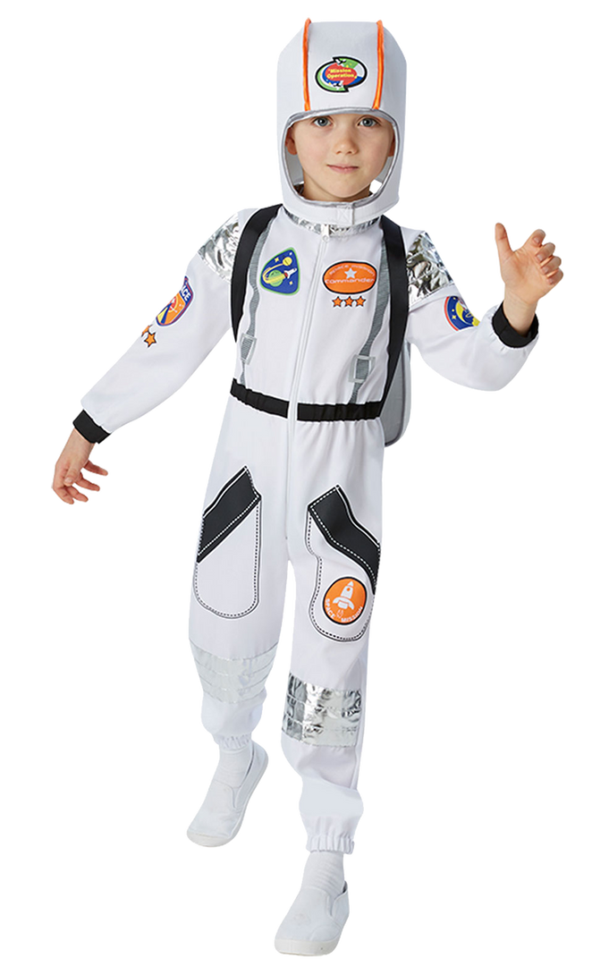 Be the first person to step into party space with our out of this world Astronaut costume! Featuring a white jumpsuit with front zip, matching headpiece and white backpack.