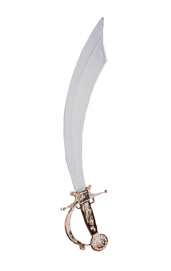 The Pirate Cutlass Sword Accessory is made up of plastic a grey blade with a golden handle, or hilt. It measures approximately 48cm in length, making it the perfect accessory for adults.