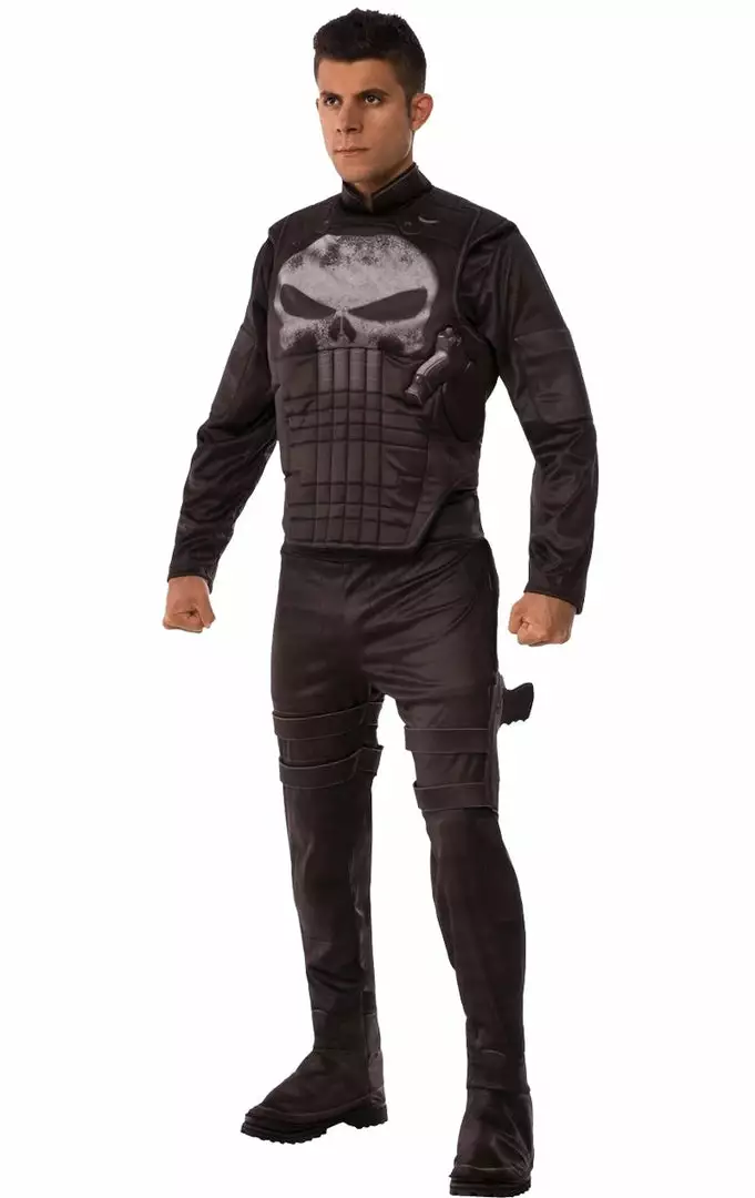 Fight to clean up the crime on the streets of New York City whilst seeking to avenge your family in the Mens The Punisher Costume. Transform into Frank Castle in this superhero suit emblazoned with his famous Skull emblem, gun holsters and vest. This Punisher fancy dress is high quality, making it ideal for cosplay at Comic Cons or superhero parties. The combat style costume goes back to Frank Castle’s roots when he was serving in the US Marines, so slip on this Punisher costume for adults and start fighting it out on the dance floor… it’s much more tame!