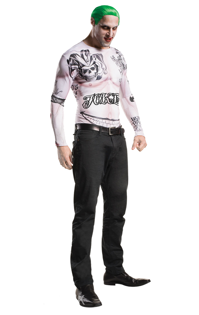 Did you catch the Suicide Squad movie? Get into character of The Joker portrayed by Jared Leto! This edgy green-haired Joker costume costume features a printed t-shirt, green wig and makeup kit. Partner up with Harley Quinn and you’ll be the evilest duo around! Whilst many people opt for Heath Ledger’s Joker, this Mens Joker costume based on the Suicide Squad is the way to go to stand out from the crowd of make-up covered villains on Halloween!