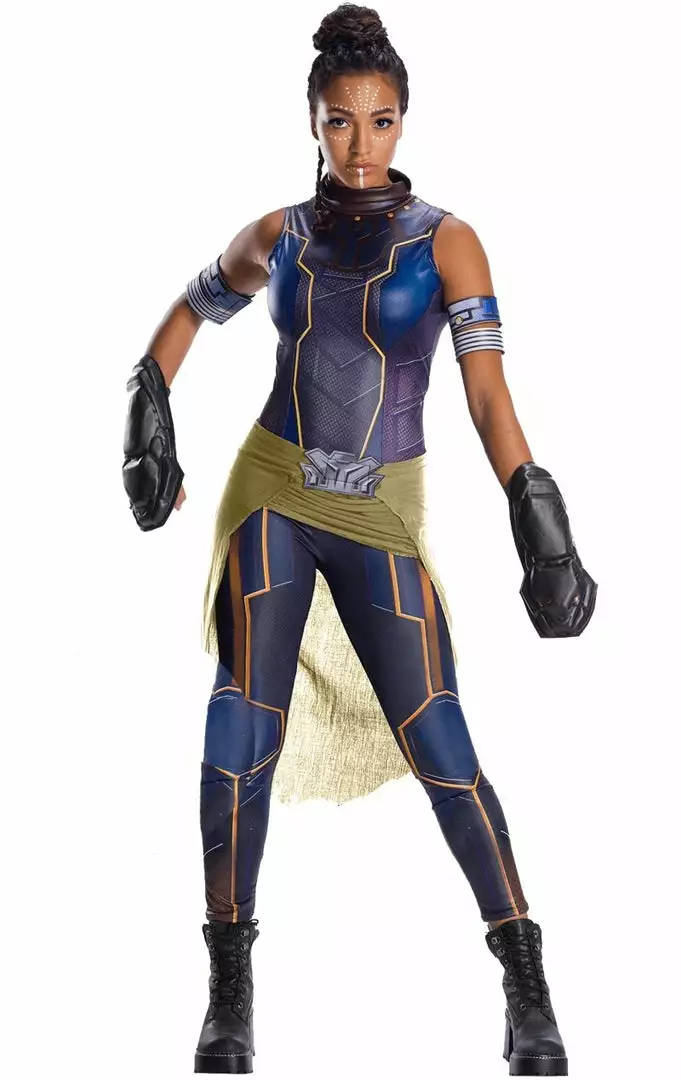 You can attend that superhero party dressed as this Infinity War character and try to steal the Infinity Stones off of Vision… to stop old Thanos getting his paws on them. This costume features a jumpsuit based on the Vibranium suits she so famously creates as the Wakanda Design Group, and includes everything seen in the image, so no extra add ons! Comic Con here you come!