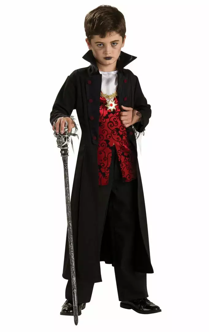 Be a suave, immortal child this Halloween in our Kids Deathly Vampire Costume. A modern take on the traditionally caped vampire look. Feast on the innocent this Halloween and bleed the unworthy to death! Product includes dark jacket with attached patterned waistcoat and medallion. Add some super scary vamp make up to complete the look!