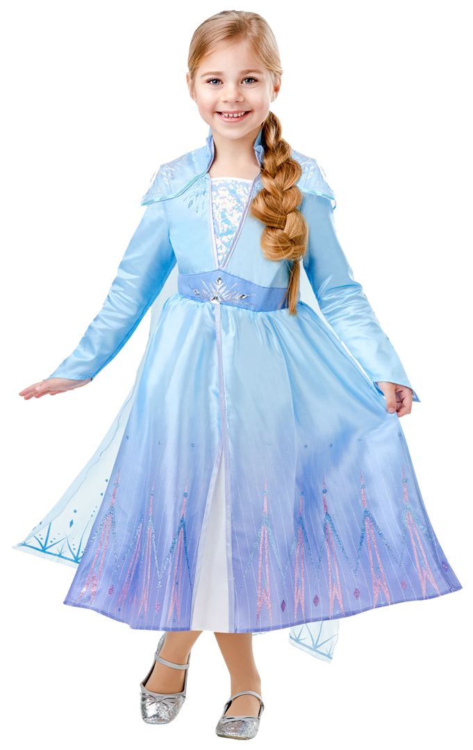 The ice Queen of Arendelle is always ready to party, that’s why the Kids Disney Frozen 2 Queen Elsa Costume is essential to your little one’s dressing up box. This Disney’s Frozen Elsa dress is officially licensed and perfect for your little Pixar fan. Whether they’re off to a Frozen fancy dress party, a Disney party or even World Book Day, this princess theme is easy to pull off. This Frozen 2 costume features a blue dress with sheer netted sleeves, shimmering crystal snowflake pattern and a cape made to look like ice!