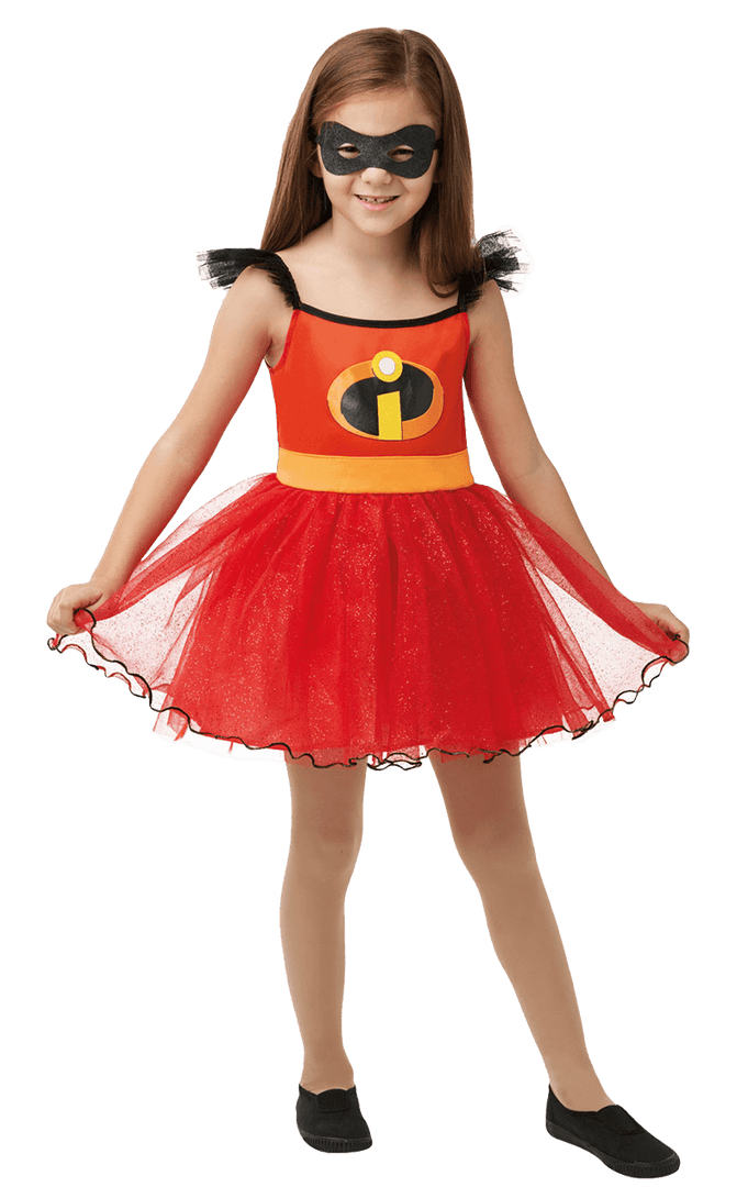 The Kids Incredibles Girls Tutu Costume includes a beautiful bright red dress with a tutu skirt. It features intricate detailing throughout to match the original design of the Incredibles uniform, as well as the iconic ‘I’ logo. Completing the look is a black eye mask to disguise your child’s identity as they take on the world and become invisible, just like Violet.