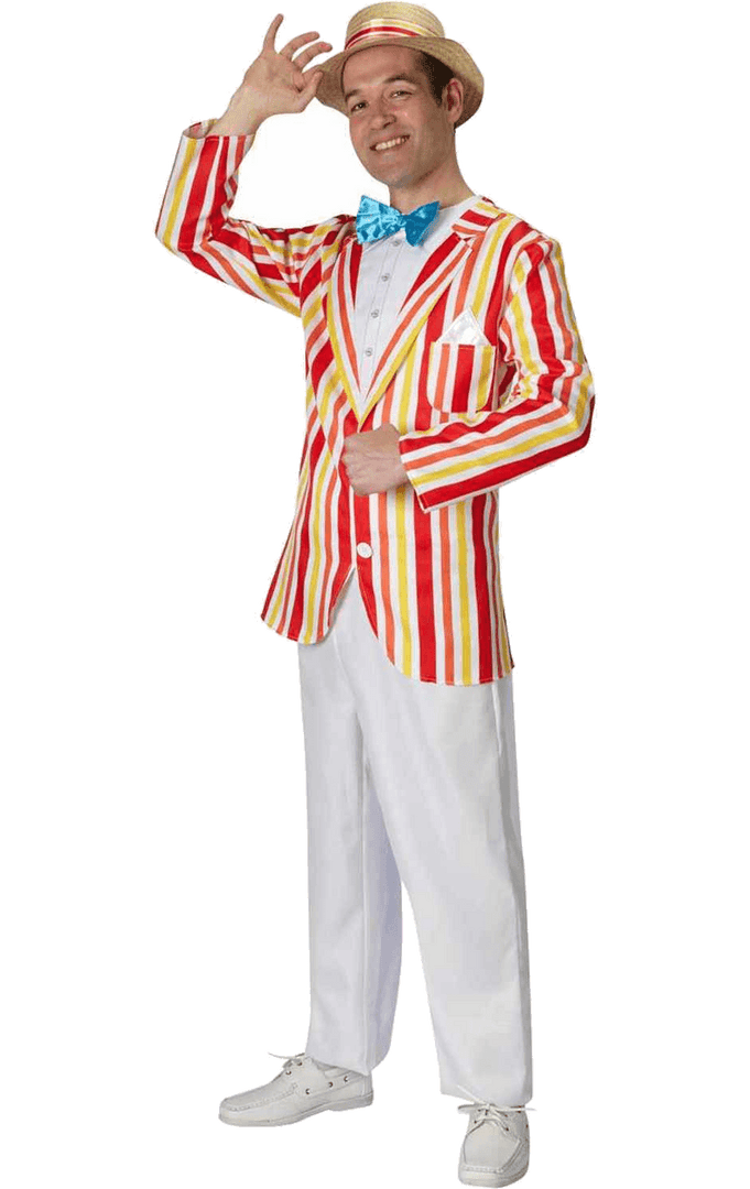 Oh, it’s definitely a Jolly Holiday with Mary – who wouldn’t want to jump from the rainy streets of London into a sunny world of dancing penguins and carousels? Get ready to sing Supercalifragilisticexpialidocious at the top of your voice as you spin around in your fancy 1920s style red and white boating regatta blazer in this official Mary Poppins Mens Bert Jolly Holiday Costume.