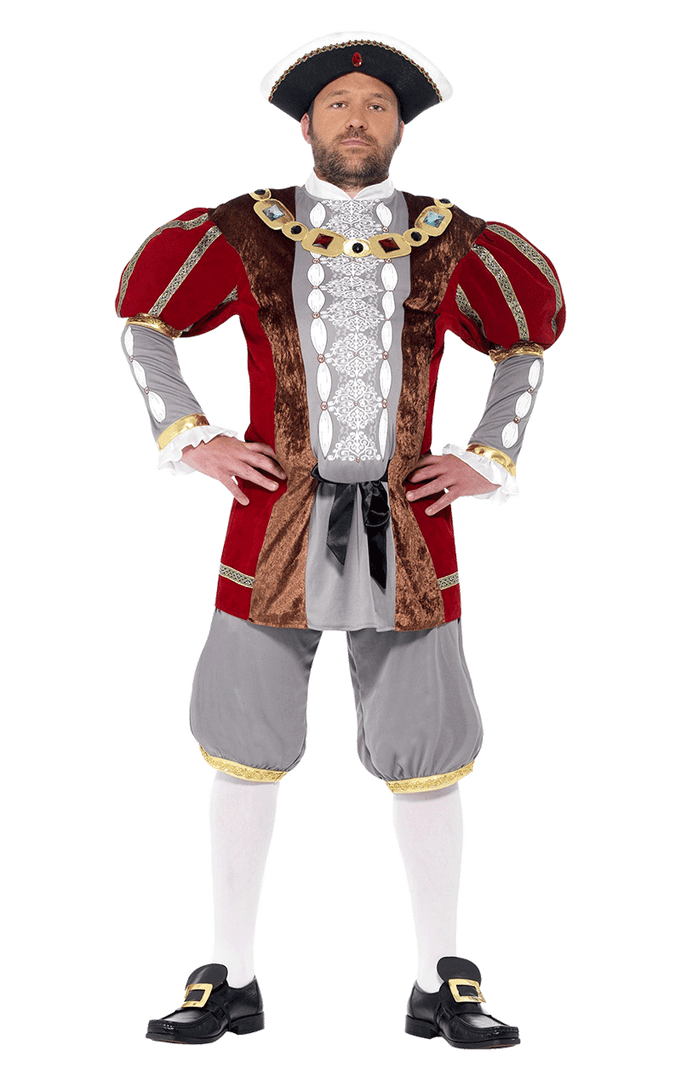 Dress up as one of the most famous Kings in history with our Adult Henry VIII Costume. Includes elasticated shorts and matching long tunic with puffed sleeves, attached necklace jewels and belly padding. Please note the hat is available to be purchased separately.