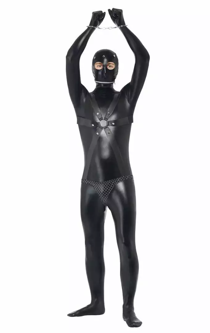 Bring out the Gimp! If you’re after a realistic gimp costume then you’ve come to the right place. This faux leather black bodysuit, complete with straps and chainmail pants, is perfect for creating that ultimate wet look and for humiliating stags across the country.