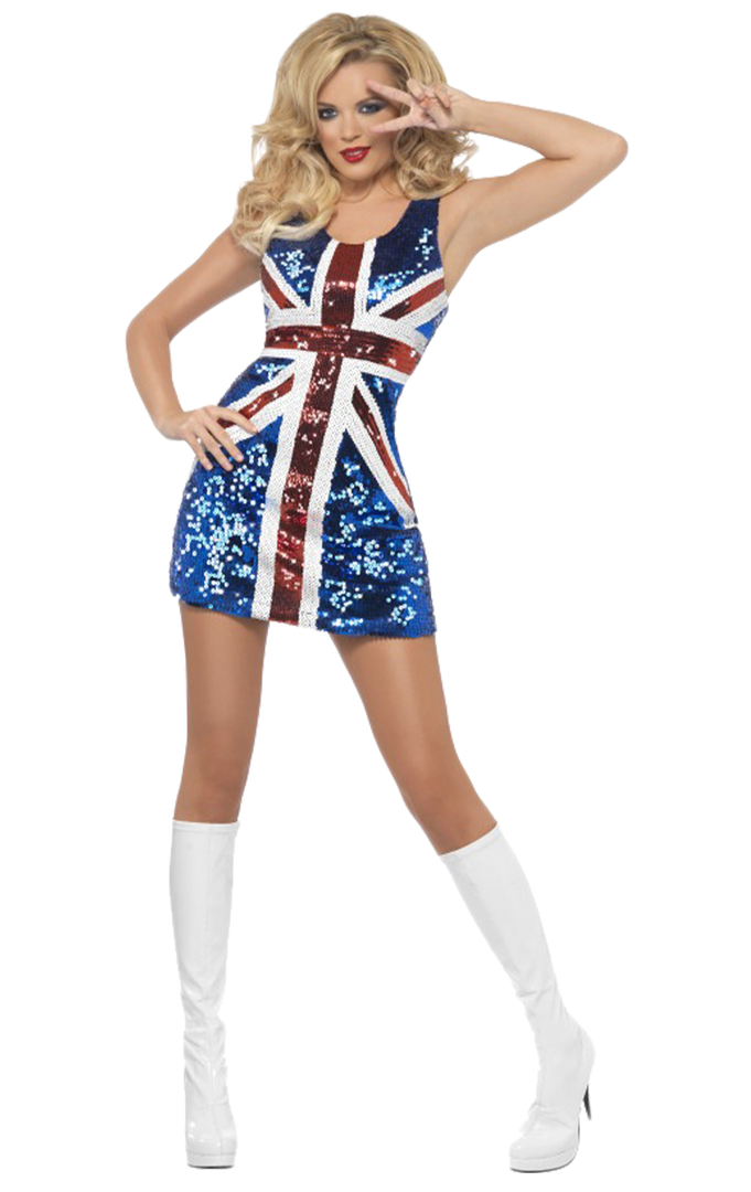 Look simply stunning in this Geri Halliwell inspired Womens Sequin Union Jack Costume. Whether you鈥檙e recreating the popstar look, heading to a Jubilee themed party, or want to support your country at a sports event, this is the perfect, glamourous costume to get you in the party spirit.