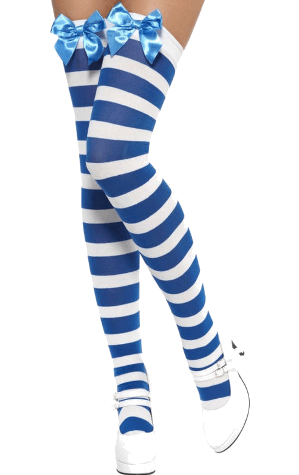 Ahoy Sailor! Get your pins out at your next uniform party, these Blue and White Striped Stockings will take your outfit up a notch. These nautical socks will elongate your legs and tie your sailor outfit together as you salut from your ship and sail off into the ocean. Reuse them at Halloween too as and complete your little rag doll look – so versatile!