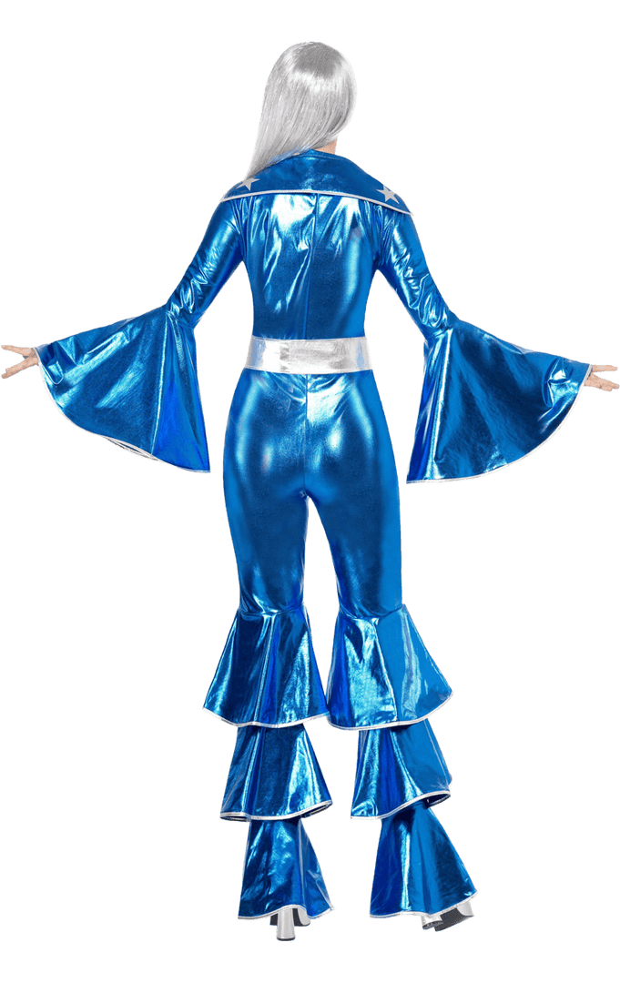 Take a chance on us with this Blue Dancing Queen Costume. Whether your favourite song is Mamma Mia, Waterloo or Fernando, these guys definitely would have gotten their songs stuck in your head at some point. This 1970’s Abba costume features all the iconic style of Abba themselves including fluted and frilled sleeves and trousers, metallic silver star accents and a lace up front on the jumpsuit. Pair up this outfit with a wig, a microphone and some jazzy dance moves!