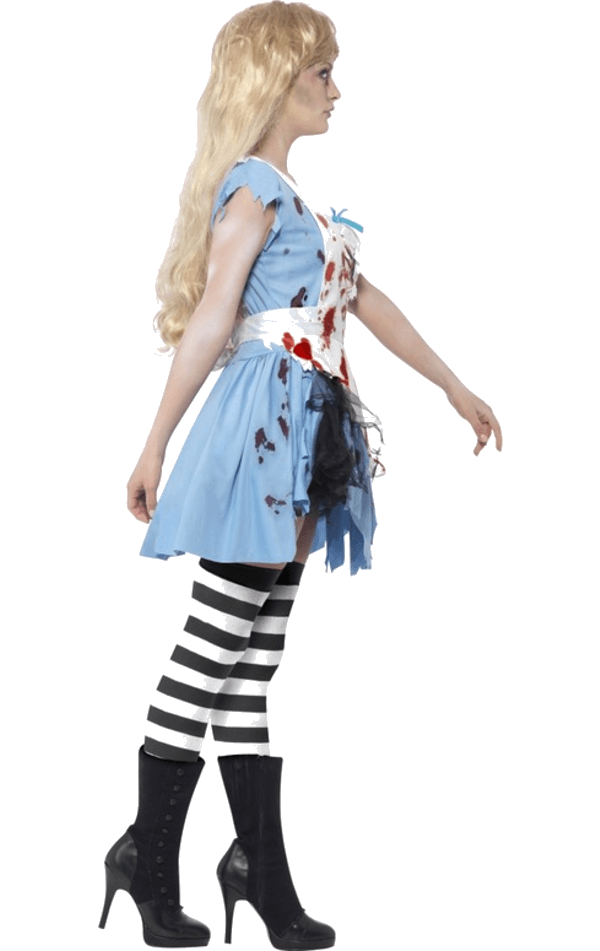 When fairy-tales get gruesome, it’s time to hide down that rabbit hole… But wait, it looks like Alice has suffered a miserable fate! Bring an unhappily ever after Halloween twist to this poor storybook character, who is now blood spattered and zombie-fied in what looks more like a ‘horrorland’ than Wonderland. You’ll look the part in our Adult Zombie Alice Costume.