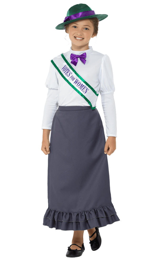 This World Book Day or History Day at school, your daughter will be ever so proud to dress up in the Kids Victorian Suffragette Costume. Complete with a suffragette sash that reads ”Votes For Women”, this smart ensemble will encourage the learning of the story behind women’s rights to vote in Britain. Your little one will understand the movement founded by Emmeline Pankhurst and Millicent Fawcett, and love getting into character for the day! These ladies were ”Soldiers in petticoats” as quoted by Mrs Banks from Mary Poppins!