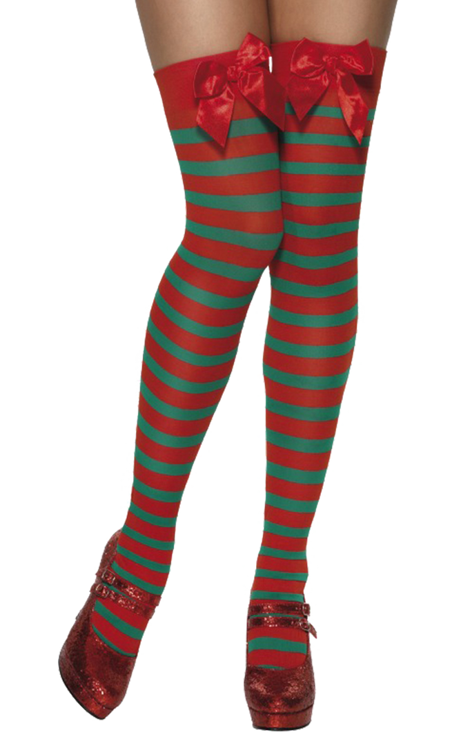The Striped Elf Thigh High Stockings come in the festive colours red and green, with a satin red bow at the top to add a stylish and chic twist to your costume.