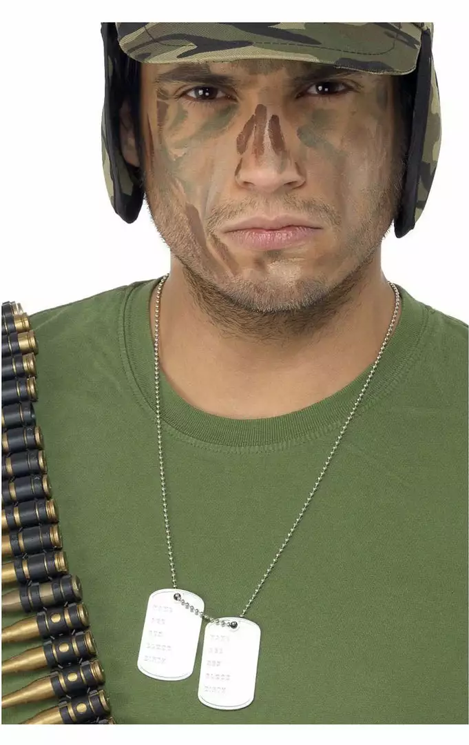 This military Dogtag Chain Accessory is an essential for any army commander! Be easily identifies in the field with these silver dog tags. Go Commander!