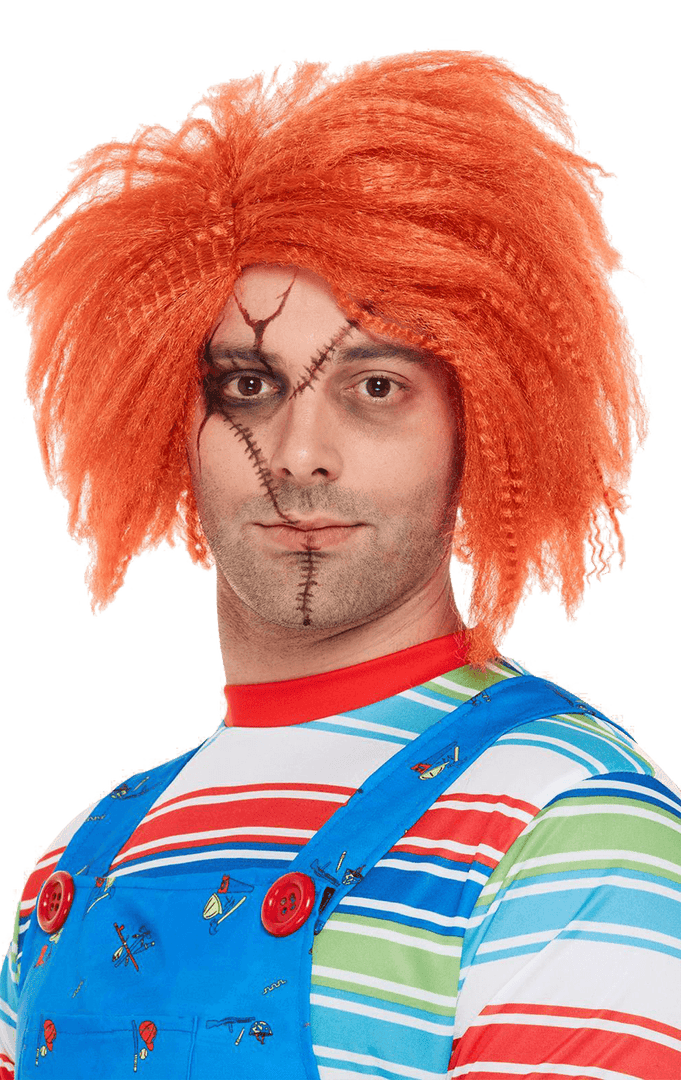 This iconic style from the good doll gone bad is a staple with every Chucky Costume. The orange Chucky Wig is an easy way to get that staple hairstyle of the serial killer doll, so pop it on this Halloween and rock up in this horror movie ensemble and scare all trick-or-treaters that arrive on your doorstep.