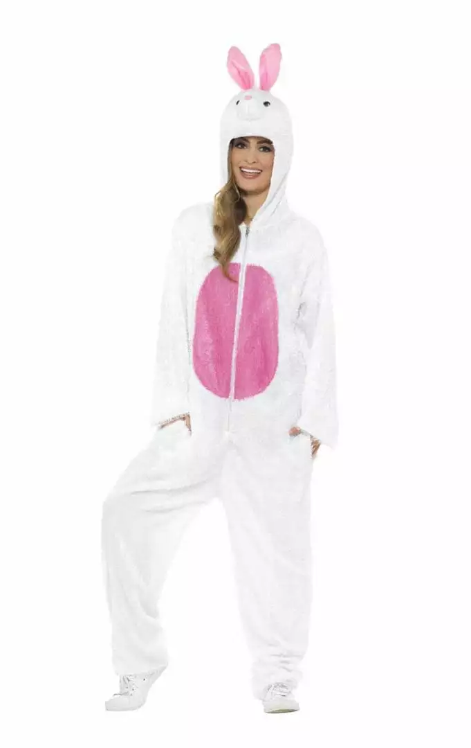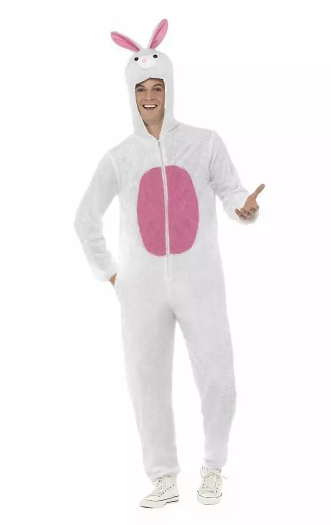 Got an Easter egg hunt coming up and want to give the kiddies something to cheer/chase? Going to a fancy dress party and want to hop into the cutest ever costume? The Easter Bunny costume will have you bouncing around the party getting petted, and getting into the animal spirit of it all! BOING! This is a one-piece suit designed to fit most adults up to approximately 48 chest.