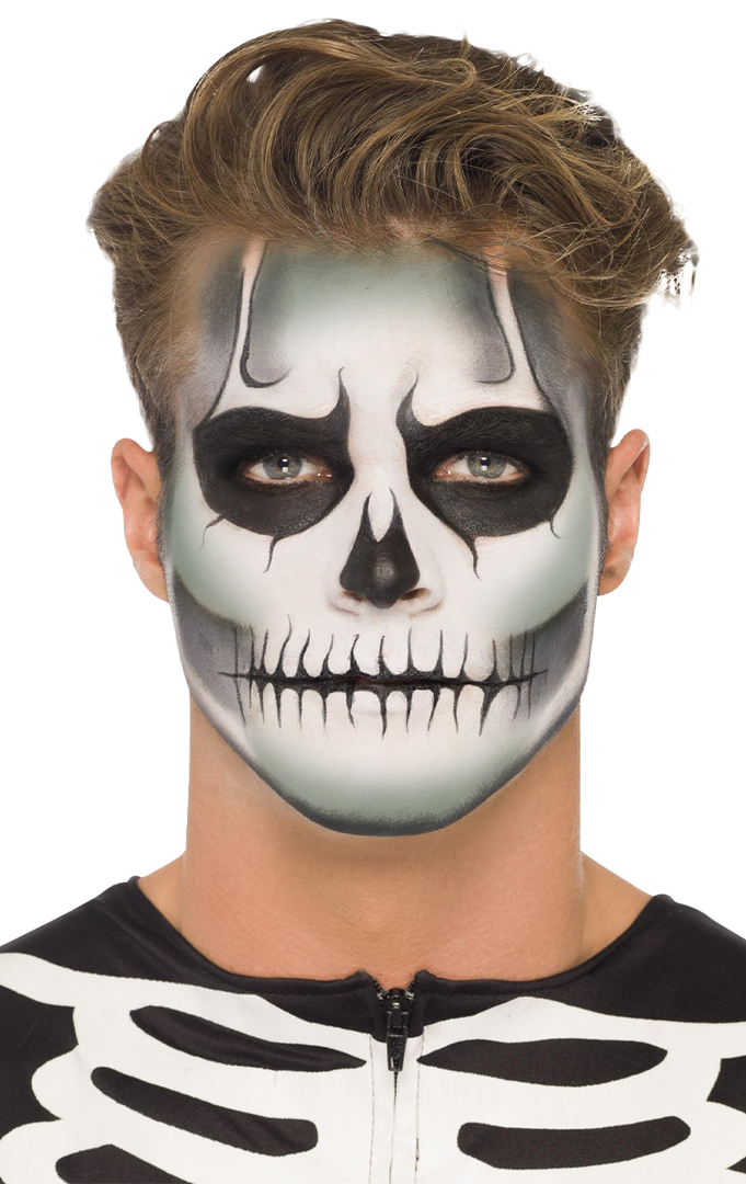 Get artistic and creepy with our Glow-in-Dark Skeleton Make Up. Better suited to the more experienced make-up user. But once done properly, it’s extremely effective and lasts really well. Perfect for a night on the town this Halloween. Plus, you’ll be able to see wherever you go because its GLOW-IN-THE-DARK.