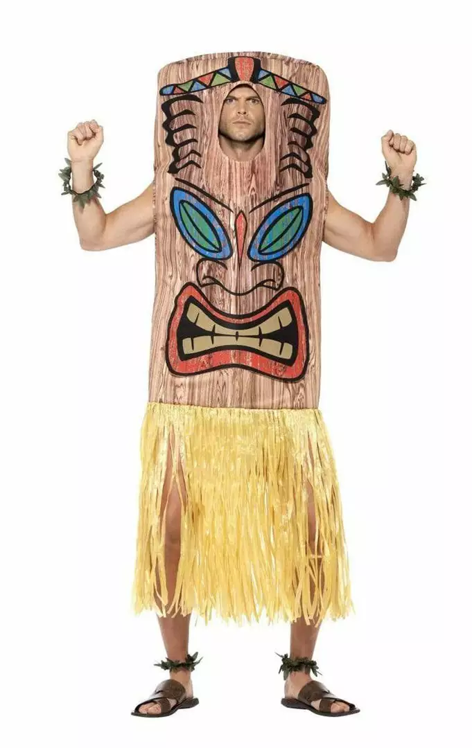 Get the Hawaiian party started by turning up in this hilarious Tiki Totem pole costume! Summer BBQ party revellers will delight in running around you in circles, whilst they pray to their Pacific Gods. You’ll scare away gatecrashers and bring luck wherever you go in this genius half-God wooden carving with grass skirt.