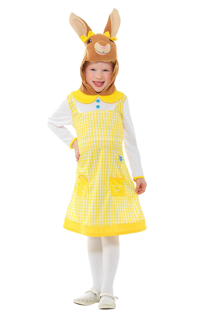 The Kids Cottontail Peter Rabbit Costume is made up of a gorgeous yellow and white chequered dress, with an attached character hood. Your little one will look just like the Cottontail character.