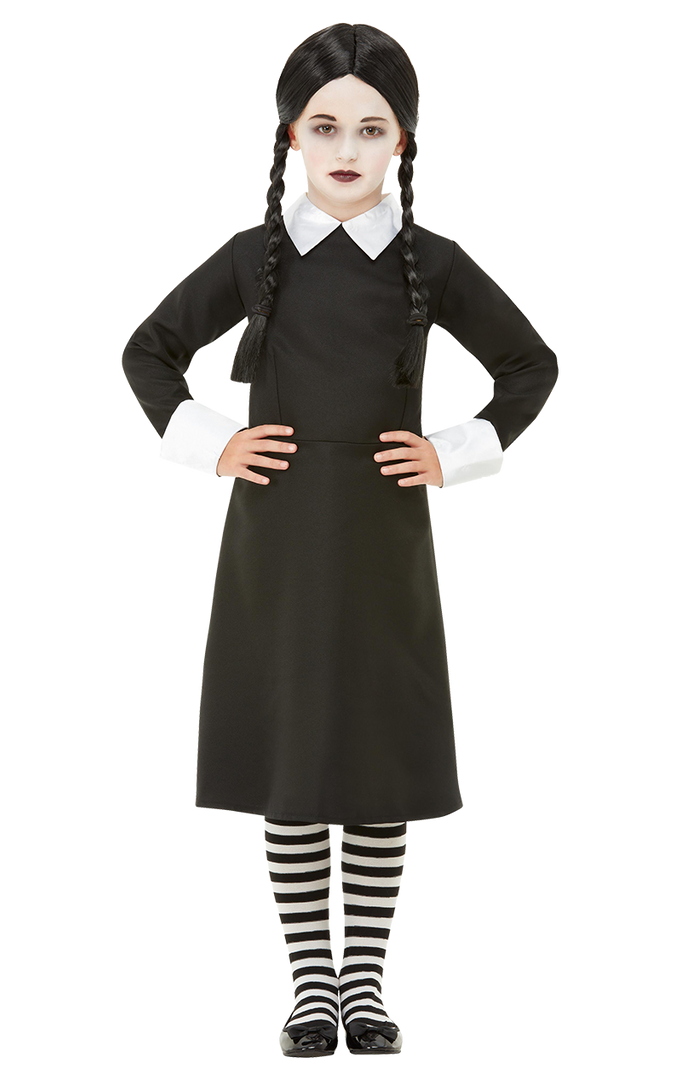 If you want to create the ultimate Addams Family costume this Halloween, dress your daughter in this Kids Wednesday Costume with wig, featuring her classic black dress and black plaited wig. This gothic character is the perfect girls halloween costume, if not a little bit kooky and ‘ooky! She’ll be getting a huge pile of sweets when trick-or-treating in this easy kids Halloween outfit.