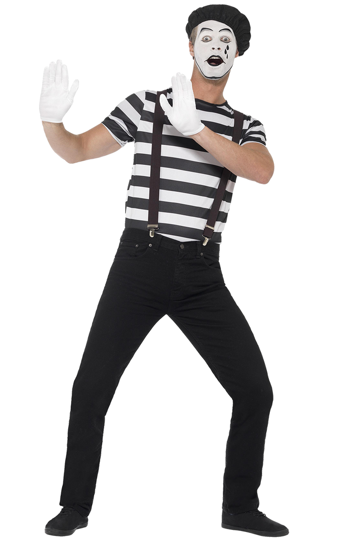 Showcase your amazing mime skills in this fantastic black and white harlequin clown style costume, based on the original French Pierrot circus look. Hanging out on streets in fancy dress just got a whole lot more fun! Wow the crowds with your invisible wall and your best facial expressions.