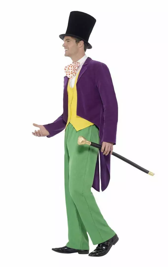 Transform yourself into the wacky and wondrous character by Roald Dahl in this officially licensed Mens Willy Wonka Costume. It will have you looking and feeling scrum-dilly-umptious as you walk into the party. This chocolatier and his famous chocolate factory is an icon; instantly recognised by all, this outfit is ideal for a teacher’s World Book Day costume. Challenge your student’s love of reading and celebrate one of Britain’s favourite authors by dressing up. Also great for film character fancy dress, pair yourself up with the Oompa Loompa’s for the most hilarious group costume!