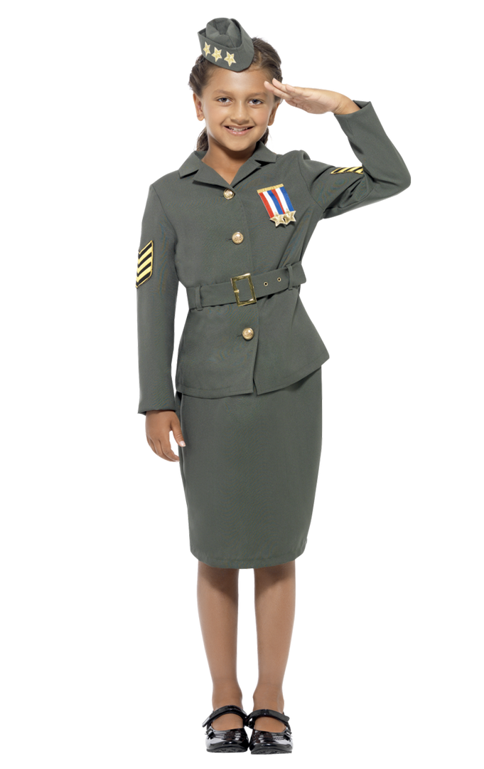 Our Kids WW2 Army Girl Costume will have your child looking authentic and in character for their school trip or play. It also makes a great World Book Day costume for young readers who have become interested in the literature of the 1940s.
