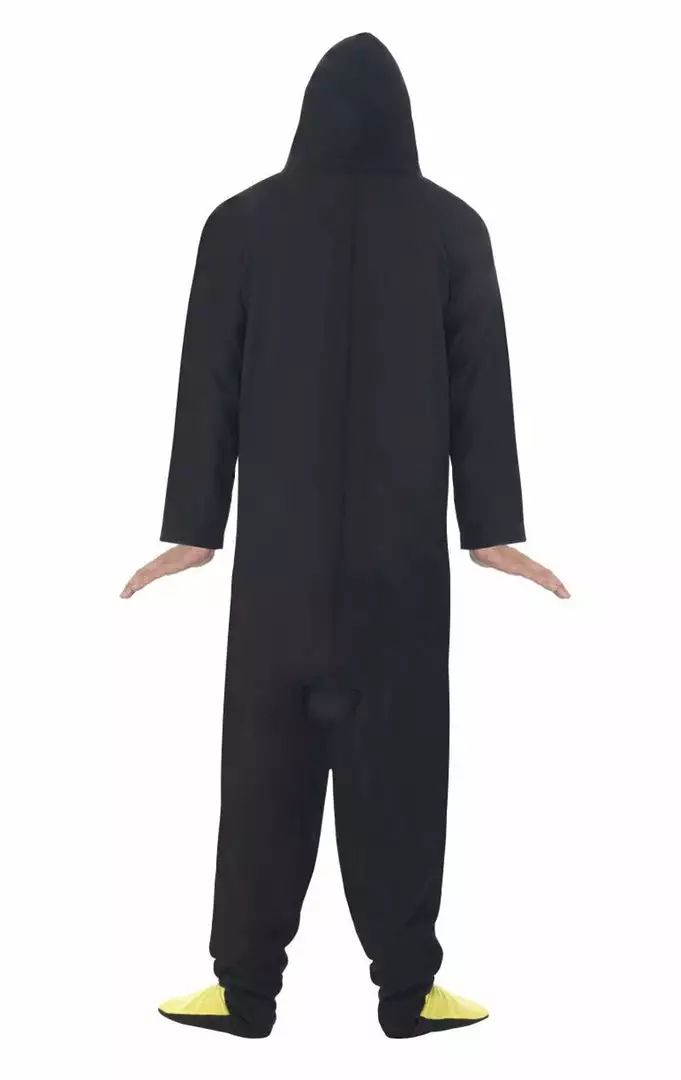 The Penguin Onesie Costume is made up of an all-in-one fleece jumpsuit. The attached hood features a printed penguin face, so you can be comfortable but cool as you enter the party.