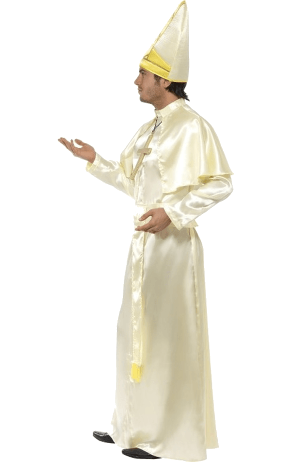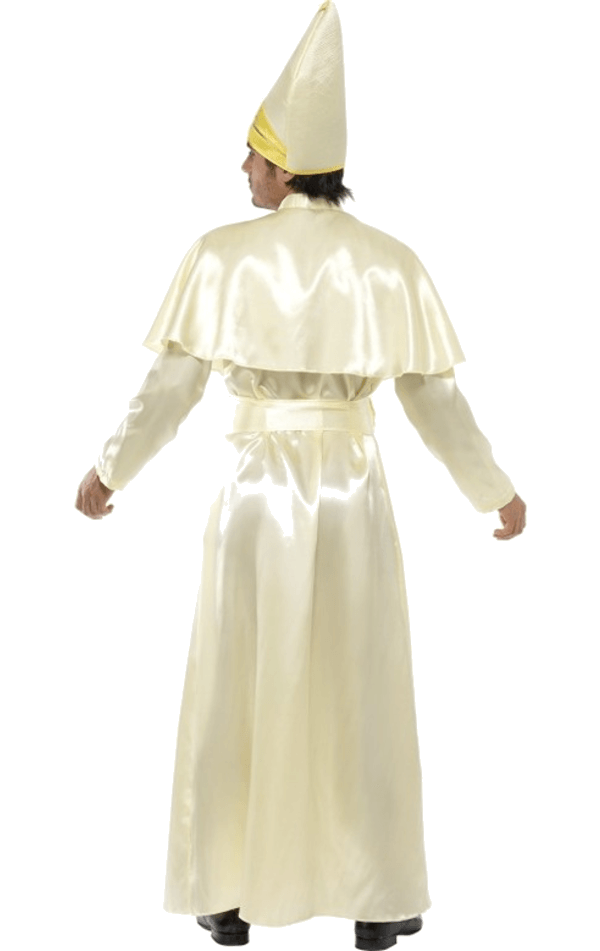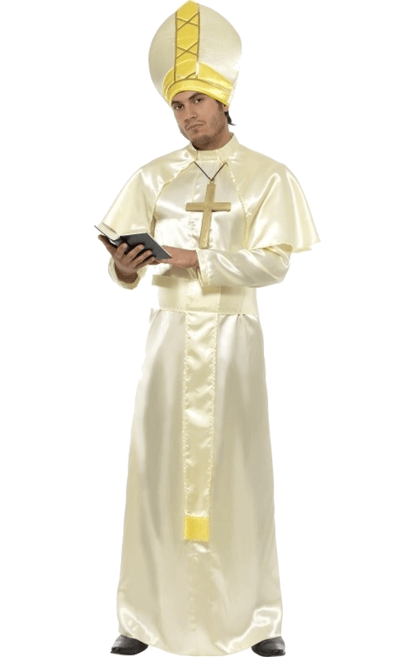 Transform yourself into His Holiness in this impressive gold-coloured Pope Novelty Costume. This costume brings you instant papal power as you become the Bishop of Rome and leader of the Catholic Church overnight! Enjoy waving your bible and muttering prayers under your breath as you save the souls of party-goers at your Saints and Sinners or Halloween themed party.
