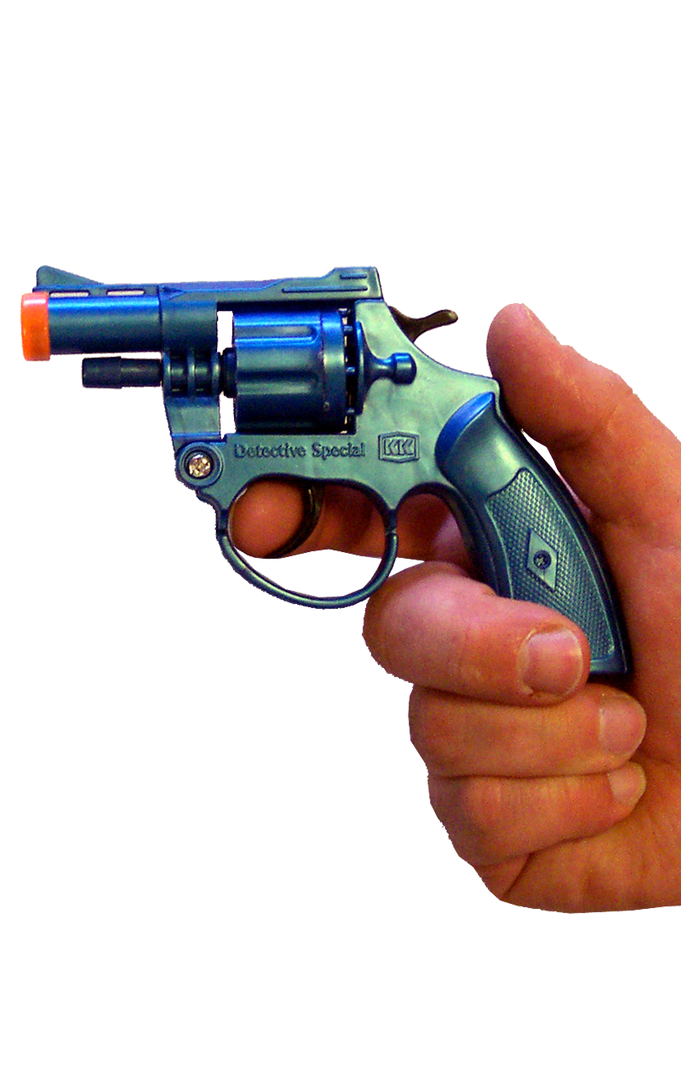 Are you getting ready to be the quickest gun drawer in the party town and to blow all the other competition away? Pop this little Super Cap Gun in your pocket and have everyone jumping out of their skin at the noise! Point, shoot, blow the end for professional filmic realism!