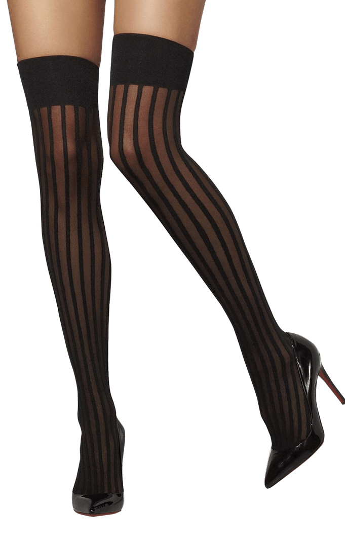 When it comes to dressing up and if you have a short skirt or dress you can’t beat the sexiness and playfulness of thigh highs! Whether you’re a high kicking can can dancer or a classy cocktail waitress, these Thigh High Stripy Stockings will look flirtatiously fabulous on your perfect pins!