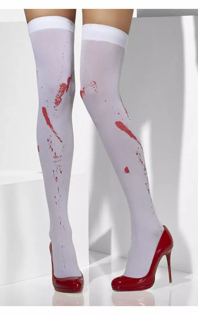 Whether you’re the victim or assailant of a horrifying crime, attack or killing spree, these White Blood Stained Hold Up Stockings Accessory will get you the deadly look this Halloween. Add some blood splats to a nurse’s uniform, look like you’ve just escaped the Big Bad Wolf with a little red riding hood costume or like you’re ready kill some zombies – these stockings are sure to add some gore to your Halloween fancy dress party!