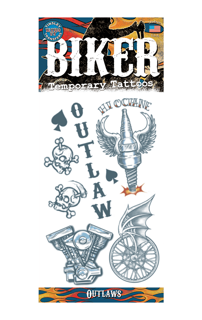 What wannabee fancy dress biker would be complete without riding down the highway with real looking hell raising tattoos? Get the look without all the pain with this Biker Tattoo Set and tear up the roads and the dance floor with these fast fitting inks!