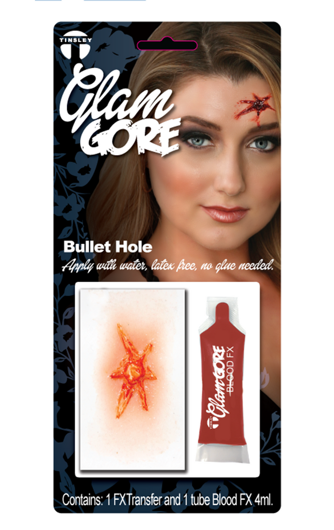 Whether you’re a zombie that’s had a bit of a scuff with a zombie hunter, dressing up as a Halloween version of Bambi or a 1920s gangster that’s run into trouble with the mafia, the Bullet Hole Glam Gore SFX will be essential to your look!