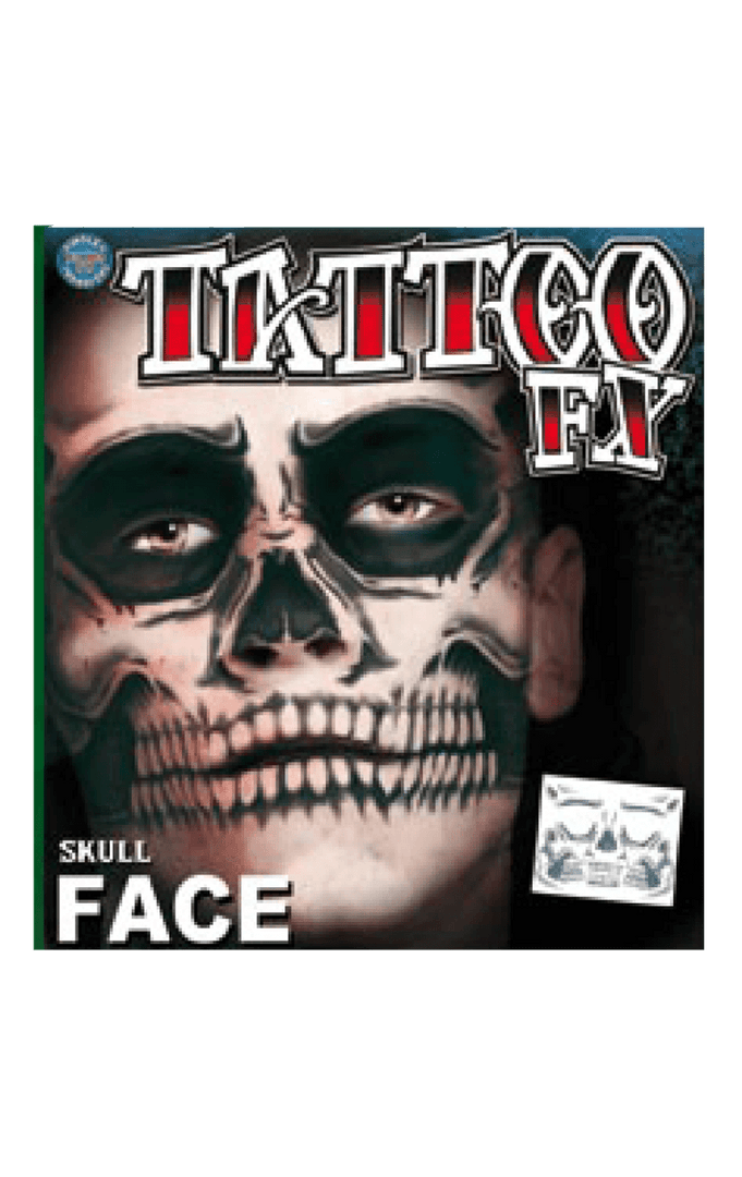Taking time off from wearing facepieces at Halloween? Want something just as effective that create an impact? Try the Skull Face Tattoo, easy to apply, wear and scare! Pair it up with a skeletal skinsuit or Day of the Dead fancy dress costume for maximum impact. Make no bones about it, no one will be finding this look humerus!