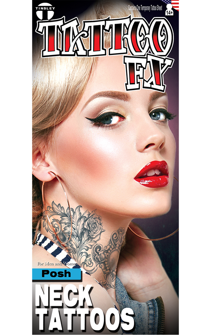 Get the pin-up, rockabilly girl look with this unique Dafacepiece Floral Neck Tattoo FX. Not all tattoos have to be big and scary, and you can fake it until you make it with this floral print and feminine neck fake tattoo.