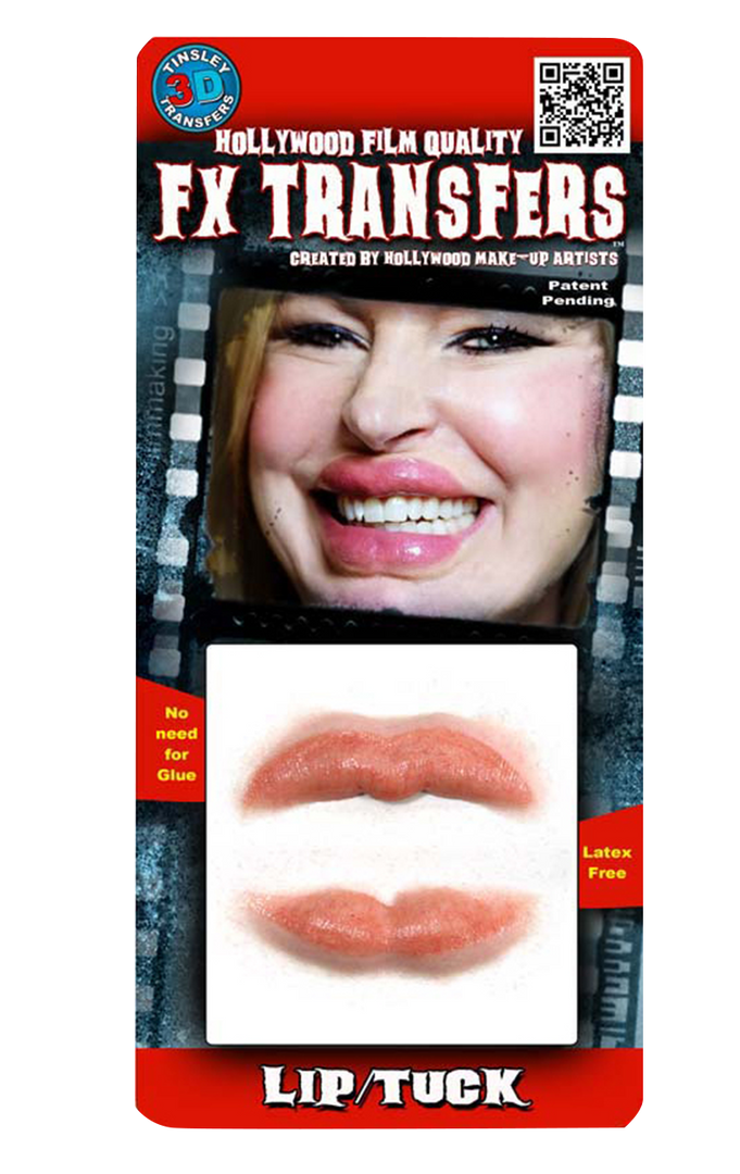 Going to a celebrity themed fancy dress party and want to look like a plastic fantastic work of wax art fresh out of surgery? Channel those scarily superficial heights of face modification with these very realistic Lip Tuck 3D FX Transfers and look like you could pass for a desperate for youth melting actress from tinseltown…