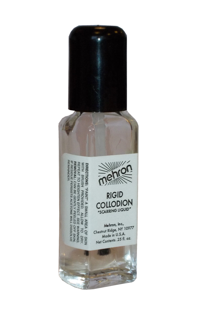 The Rigid Collodion & Brush has been a secret for make up artists to the stars for many years, creating realistic scars and scratches in big blockbuster films. Now you can bring a bit of movie magic to your costume too, simply apply liquid to a small area of the skin and repeat to heighten effect, application brush attached to cap for easy use. Use make-up to give appearance of swollen or inflamed skin and gently peel from skin to remove. Bottle .25 fl oz.
